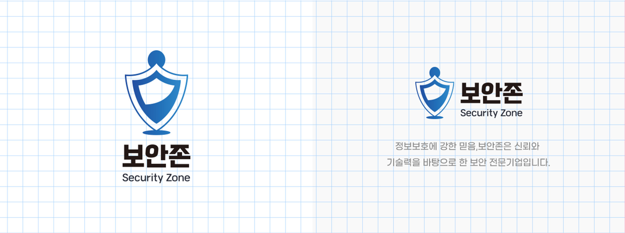 방패 형태의 로고는 외부 위협으로부터 정보를 지켜내는 보안의 상징이며, 선명한 블루 컬러는 신뢰, 정직, 전문성을 의미합니다.